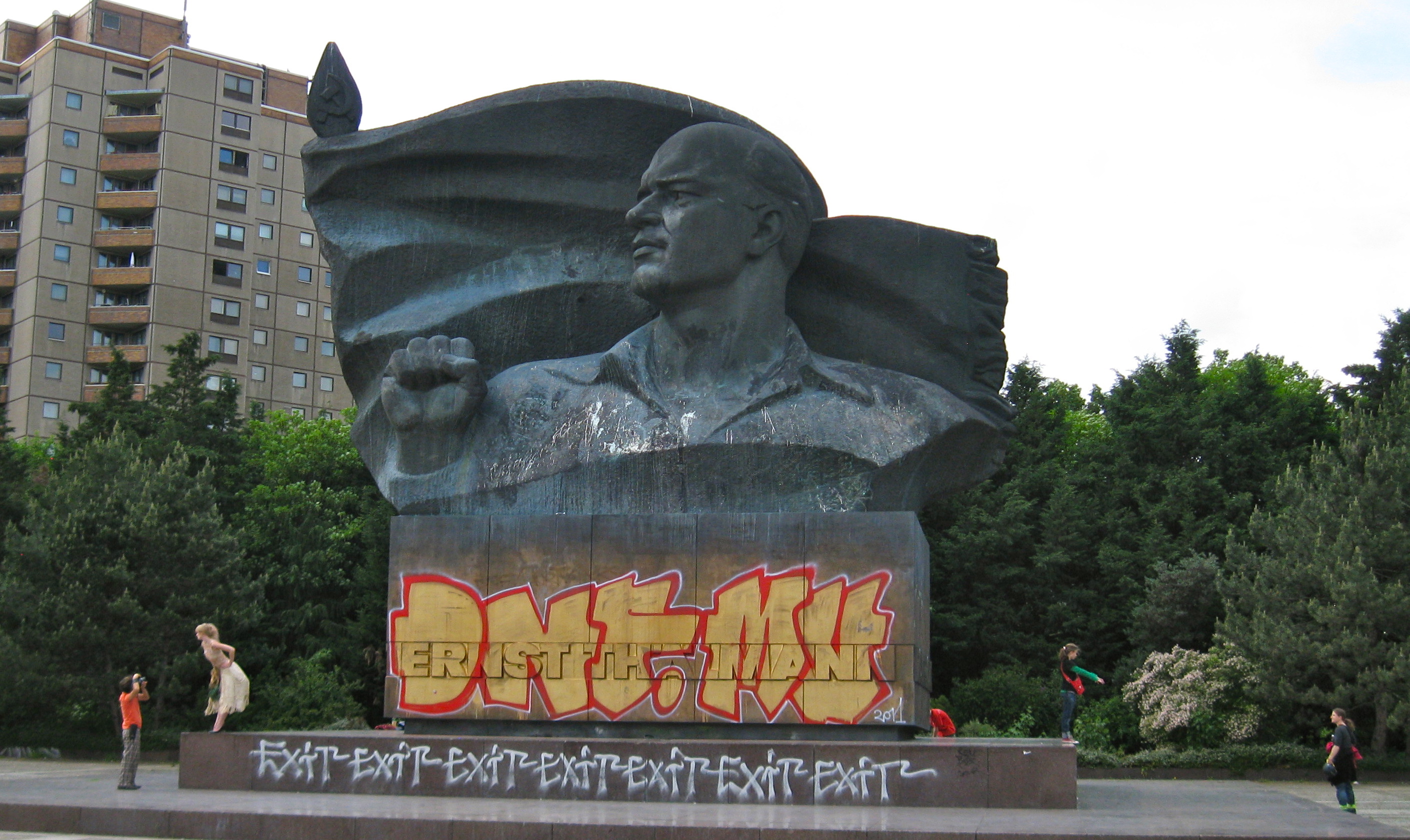 (perpetually graffitied Ernst Thälmann Park memorial bust)