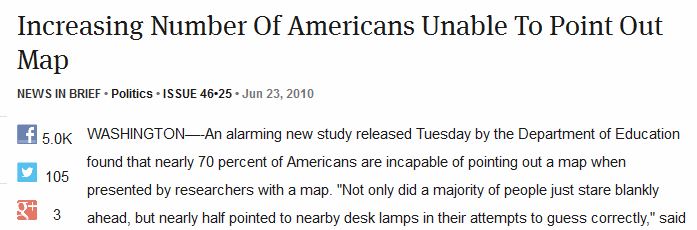 The Onion Reports: “Increasing Number Of Americans Unable To Point Out Map”