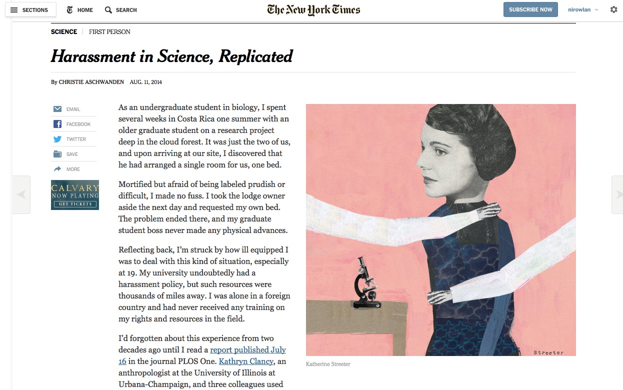 A piece in the New York Times recently discusses sexual harassment while scholars are out in the field conducting research.