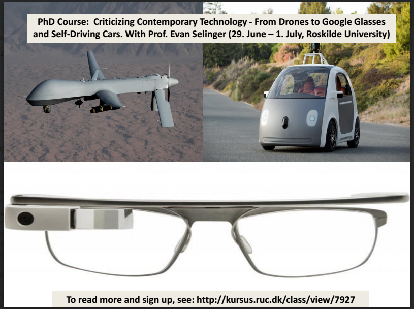 Free 3-day PhD Course: “Criticizing Contemporary Technology: From Drones to Google Glasses and Self-Driving Cars” w/ Prof. Evan Selinger (RIT, USA)