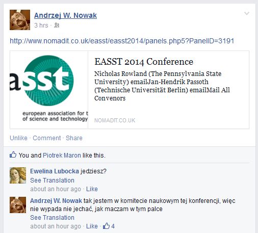 To all track convenors EASST2014 conference